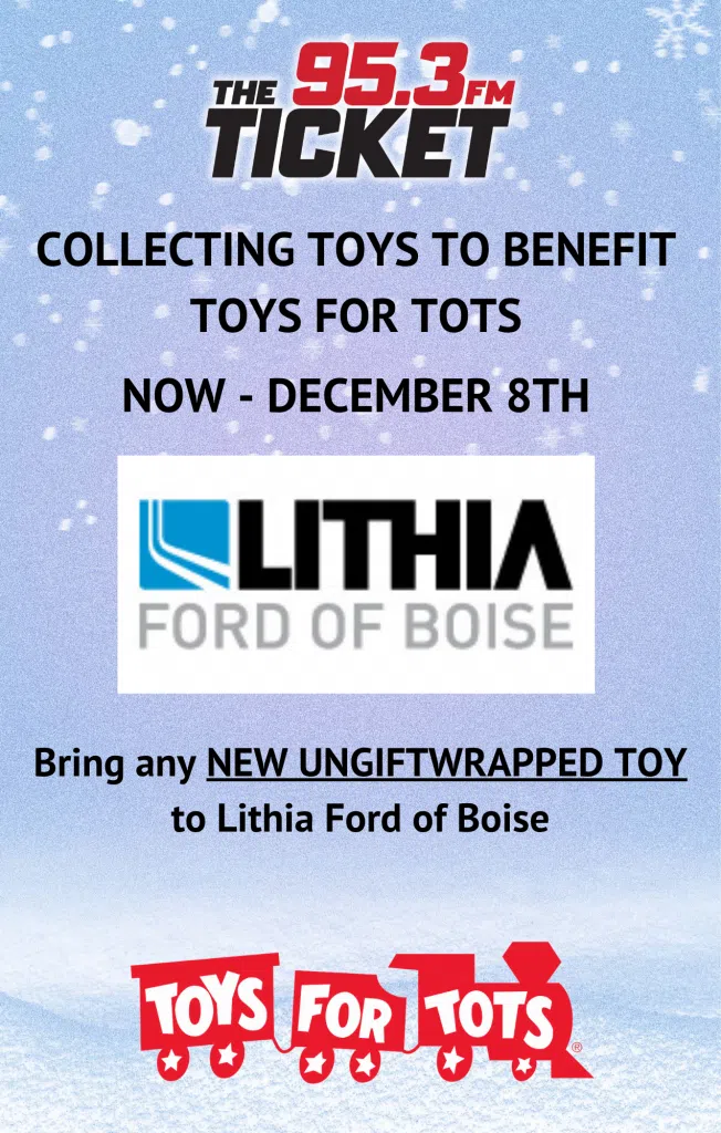 Lithia Ford is collecting toys to benefit Toys for Tots! Now – until December 8th, you can drop off any new, un-gift-wrapped toy at any Treasure Valley Lithia Ford Dealership!